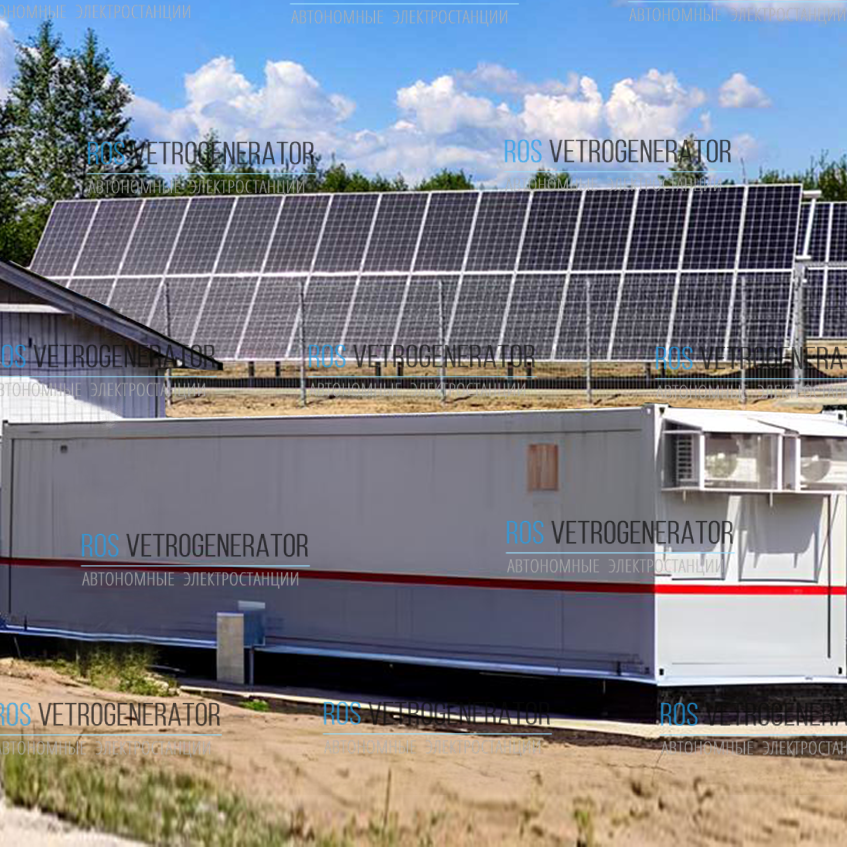 Гибридную электроустановку АГЭУ 41 кВт можно дополнить дизельным генератором для длительной автономной работы. Дизельгенератор размещается в блок-контейнер. Солнечная станция с генератором — это уверенность в бесперебойном питании даже в пасмурную погоду и периоды пиковой нагрузки. Вы получаете полную автономность, не завися от внешней электросети. А возможность подобрать генератор под нужные задачи делает систему максимально гибкой и удобной в эксплуатации. Генератор включается только при необходимости, что позволяет сэкономить топливо и уменьшить эксплуатационные расходы.